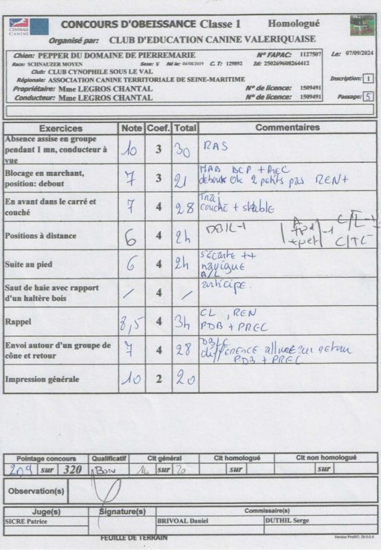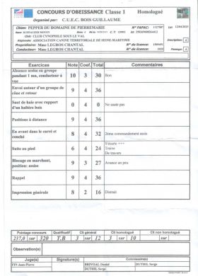 Pointage du concours de Dieppe