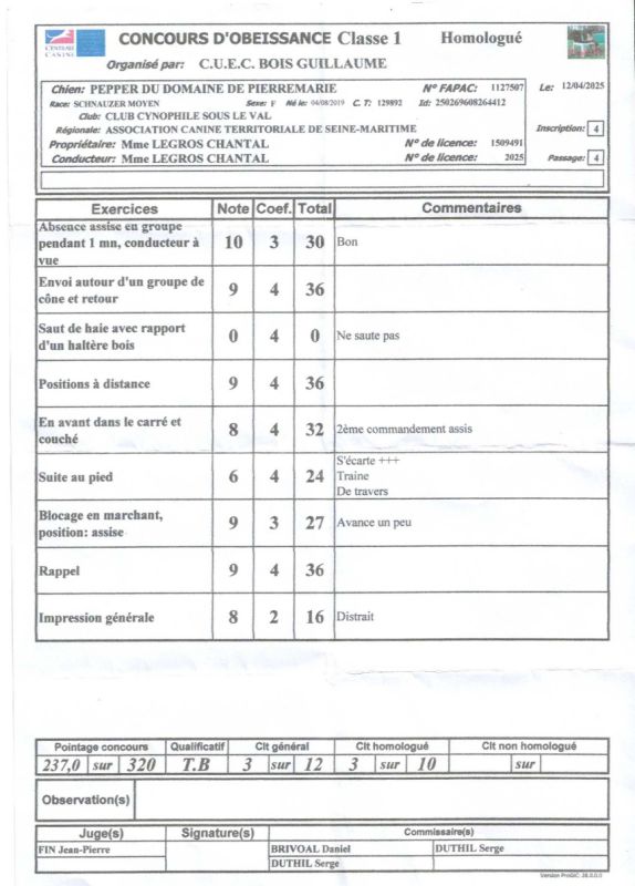 C.S.A.U et Obéissance - Résultats et Classements