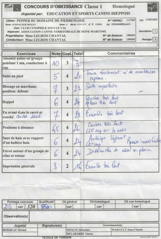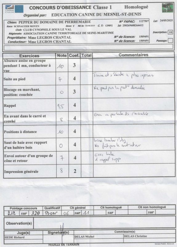 Pointage du concours du Mesnil St Denis (78)